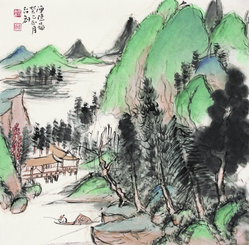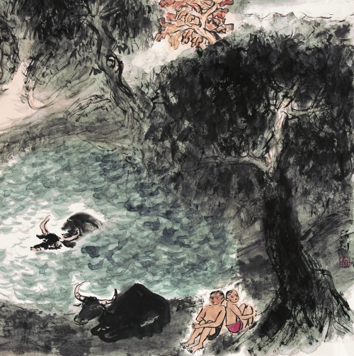 行创春听山歌,夏沐山泉,秋闻山笑,冬观山骨,梦抱山魂。触摸到岩浆的烫手,阴阳向背,质厚沉默,坐卧兀立。扶肩搭背,眉皱眉舒,目光顾盼,虎跃龙腾。他感受到元四家笔下旋律起伏的激流,吸收行草书意,使之随意应变,错综有序。音质纯,音色润,余音袅袅。点点是小圈,圈圈是巨点。青春的风流衍于画里画外。持之以恒,月异日新,当能大突破成法,造境遥深,诗味浓郁,使读者徘徊其下不忍离去……