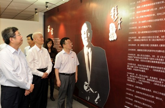 新华网河南频道10月11日电 当日,由郑州大学新闻与传播学院主办的“勿忘人民”——穆青逝世10周年纪念展在郑州大学图书馆举行,本次展览共包括穆青生平介绍、穆青作品、穆青精神三个部分,展出了穆青的新闻作品、摄影作品、书法作品和其他藏品近千余件。新华社记者 李博 摄