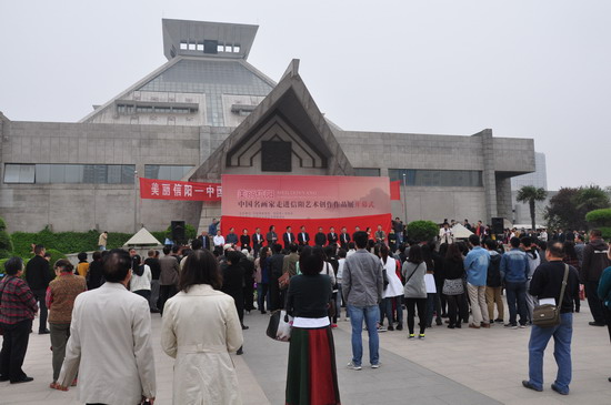 “美丽信阳·中国名画家走进信阳艺术采风活动”于2013年9月启动,历时近半年时间,经过写生、采风、展览及作品结集四个阶段。中国美术家协会主席刘大为、中国国家画院院长杨晓阳、中国女画家协会主席孔紫、河南省美协主席马国强及北京、郑州等地四十余位当代美术界的著名画家先后到信阳写生,感受豫南山水,欣赏江淮风光,体味豫风楚韵,了解信阳的风土人情,浓墨重彩为信阳留下了难得的艺术精品。此次展出的是四十多位画家信阳采风活动的全部作品,均是各位画家精心之作,无论是活动规格、画家阵容,还是艺术品位和作品质量,对于信阳来说是前所未有的,是一次难得的艺术联袂和文化盛典。