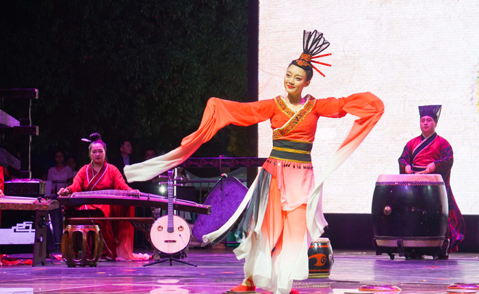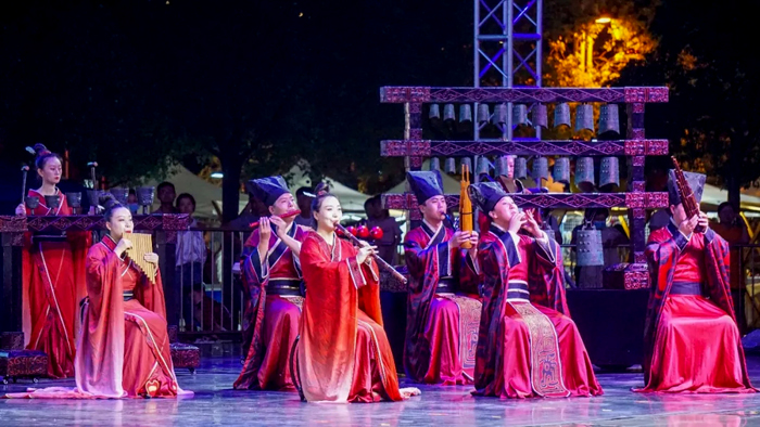 8月21日晚,河南博物院华夏古乐团“华夏正声——中原古代音乐考古复原展演”在河南艺术中心文化广场优美的如意湖畔上演。为现场观众呈现了一场承载中华民族文化记忆与传承的艺术盛宴。河南省文化和旅游厅党组书记宋丽萍到场观看。