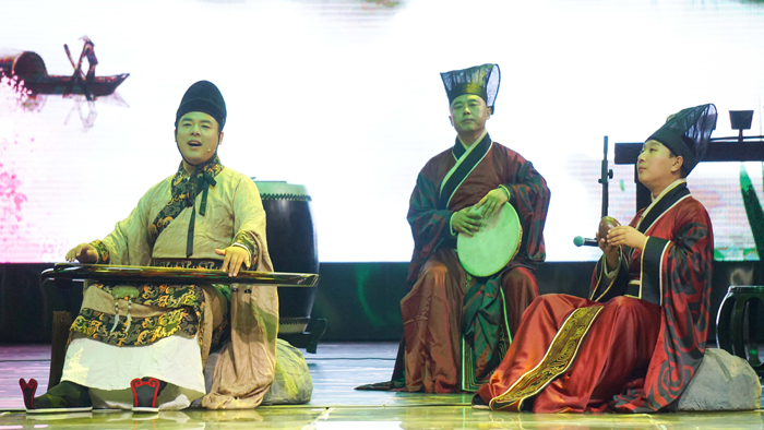 展演内容丰富多彩:贾湖骨笛与史前陶乐器组合演绎的《远古的回响》,奏响了文明最初的乐歌;《诗经·周颂·清庙》展示了厚重的礼乐文明;《诗经·郑风·溱洧》生动地展现了两千多年前郑国士女的清新纯朴;汉代舞蹈《七盘舞》再现了汉代画像中乐舞婉若游龙之风貌;《四马投唐》用舞台化的打击乐合奏演绎历史典故;《流水》勾勒出古琴曲之文人气韵;《杏花天影》《念奴娇·赤壁怀古》展现了宋代词乐之巅峰;《上楼·下楼》诠释了河南板头曲的风格特征……