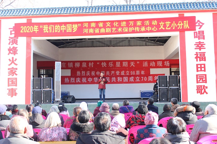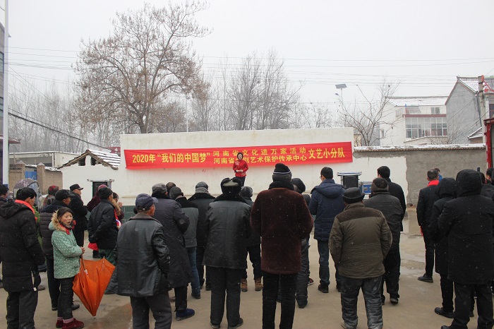 1月16日,“我们的中国梦”——河南省文化进万家活动省曲剧艺术保护传承中心文艺小分队,顶风冒雪送戏到省文化和旅游厅定点扶贫的周口市淮阳区大连乡大朱和郭寨两个村演出,为最基层的百姓送上了一场新年文化盛宴。