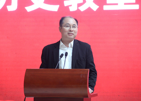 王建华在致辞中表示,洛阳博物馆与河南博物院历来有着广泛的血脉联系。河南博物院作为河南省博物馆系统的领头雁,多年来对洛阳博物馆的发展给予大力支持,此次的合作更是为洛阳博物馆社会教育工作带来了先进、成熟的教育理念和“无边界”发展的标准化创新实施模式。洛阳博物馆历史教室的成立是洛阳博物馆和河南博物院双方构建全新合作机制的开始,坚信通过此次合作,一定能更好促进洛阳博物馆与河南博物院历史文化教育资源的交流共享,社会教育功能也必将得到更好的发挥,为更多观众,尤其是青少年提供更好的历史知识和传统的文化类教育。