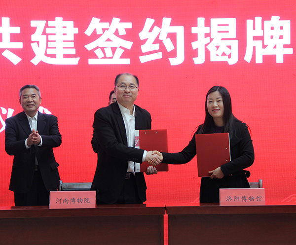 河南博物院党委副书记丁福利与洛阳博物馆副馆长王建华签订《河南博物院·洛阳博物馆历史教室品牌共建协议》