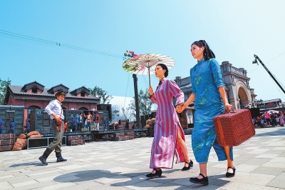 华灯初上,绸缎庄、百货店的招牌亮起来了。黄包车夫殷勤地问行人去哪,儒雅的教书先生、时髦的大家闺秀、热情的商贩往来穿梭。仿佛时光倒流,回到百年前。
