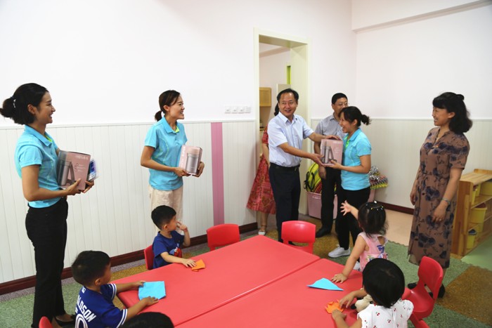 省文旅厅厅长姜继鼎(右一)到厅幼儿园调研慰问