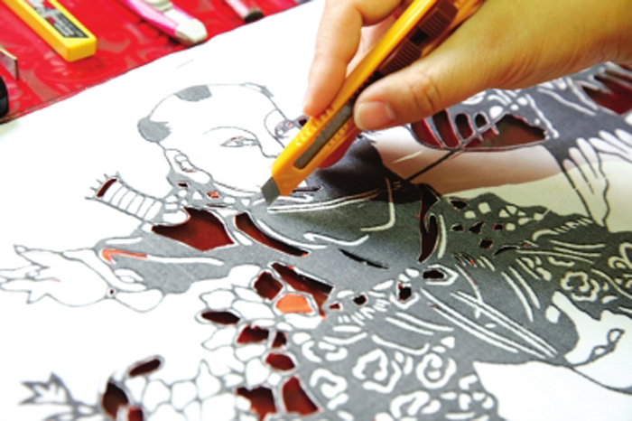 纸雕起源于汉代,是民间传统手工艺术之一。纸雕与剪纸的区别在于,剪纸主要技法为“冒铰”和“拓样铰”,无需画稿。纸雕则需绘制精细的画稿,然后用刻刀去黑留白,讲究圆如月、尖如芒、方如砖、缺如锯、线如须,融合绘画、帖花、刺绣等多种艺术表现手法,形成洗练、纯美、完整的艺术形式和独特的造型体系。