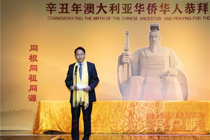 大典开始,悉尼中国文化中心主任兼中国驻悉尼旅游办事处主任肖夏勇到场致辞。费尔菲尔德市副市长、市议员黄冠勋代表市长对恭拜黄帝大典与悉尼多元文化的融合表示祝贺,对两地文化、经贸合作前景充满期待。大典主司仪、澳大利亚国际文化产业协会主席杨志唯代表主办方对五年来澳洲恭拜黄帝走过的光辉历程做了简要的回顾,对华侨华人和各界对大典的支持致以诚挚的谢意。