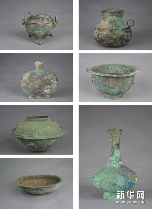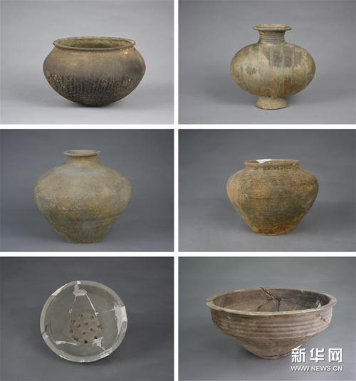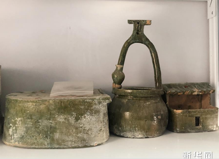 黄河边大型古墓群出土的秦汉时期的带釉陶瓷 新华社记者 李丽静 摄