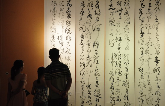 本次展览以“尚道弘雅”为主题,共展出侯和平书法、师界弘绘画精品130余幅。侯和平出身行伍,仰望草书,尚道求索,终有所成。其书法作品大气、古拙、野逸、奇趣,既有大江东去的气概,又不乏月白风清的雅致。师界弘出自书香门第,工山水,善诗文,婉约清新,以其诗意的灵动为画坛所瞩目。其作品用心境、情景、意境诠释了“宋时的那场梨花雨”,笔情墨韵层层生发,变化莫测,呈现出空灵、雅逸之诗情画意。二人艺术上追求自然、典雅、“技近乎道”的共同创作理念。两位艺术家书画联展,有着强烈的对比与反差,除部分作品以气势和格局取胜外,还有一些作品,给观众一种空山无人、水流花开或是月明林下的感觉。从艺术审美的角度来看,绘画与书法、婉约与豪放、阴柔与阳刚、流动与静逸……这种“对比美”,不仅被两位艺术家互相认知,被艺术圈所认可,也是促成此次展览的原动力。