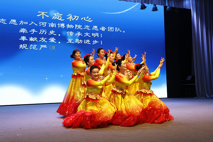 万捷在致辞中表示,河南博物院2019年接待观众174万人次,为文化强省建设、为中原更加出彩做出了积极贡献,这当中也凝结了广大志愿者的辛勤汗水。作为河南博物院事业发展中的重要力量,志愿者们15年来为“传承中原传统文化、厚植中原人文精神、创新中原文化表现力”做出了积极贡献。每一位志愿者都以高尚的品质和实际行动书写着文化志愿服务新篇章,是我院职工和全社会学习的榜样。