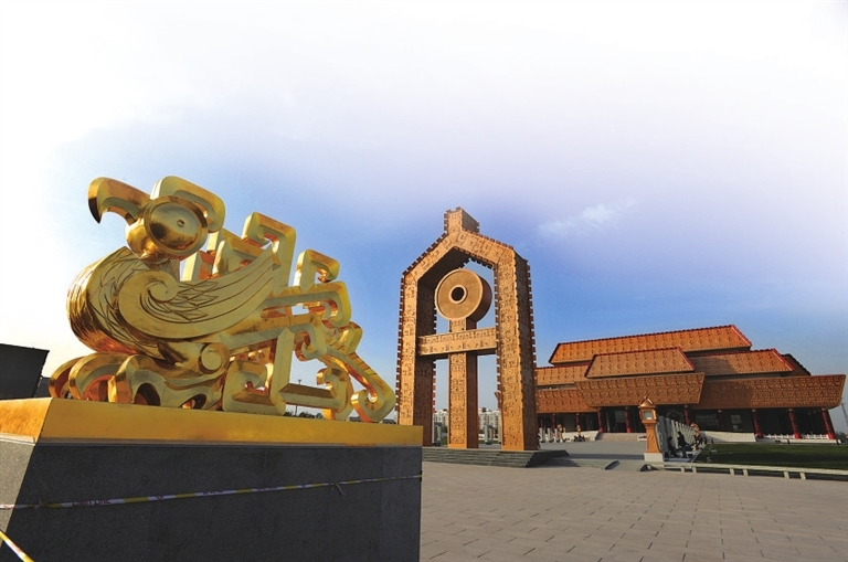 在安阳的城市中轴线上,悠悠洹河岸边,金碧辉煌的中国文字博物馆气势恢宏、令人震撼。三大主体建筑宣文馆、徽文馆、博文馆错落有致,从空中俯瞰犹如一个大大的“合”字铺展开来,体现“天人合一”。这里,是中国文字的“家”。